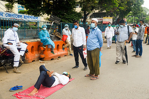 Skip To Main Content Patients Sit On The Ground As They Wait In Queue Outside Of A Hospital For Covid 19 Test In Dhaka Bangladesh On May 16 2020 C 2020 Syed Mahamudur Rahman Nurphoto Via Ap